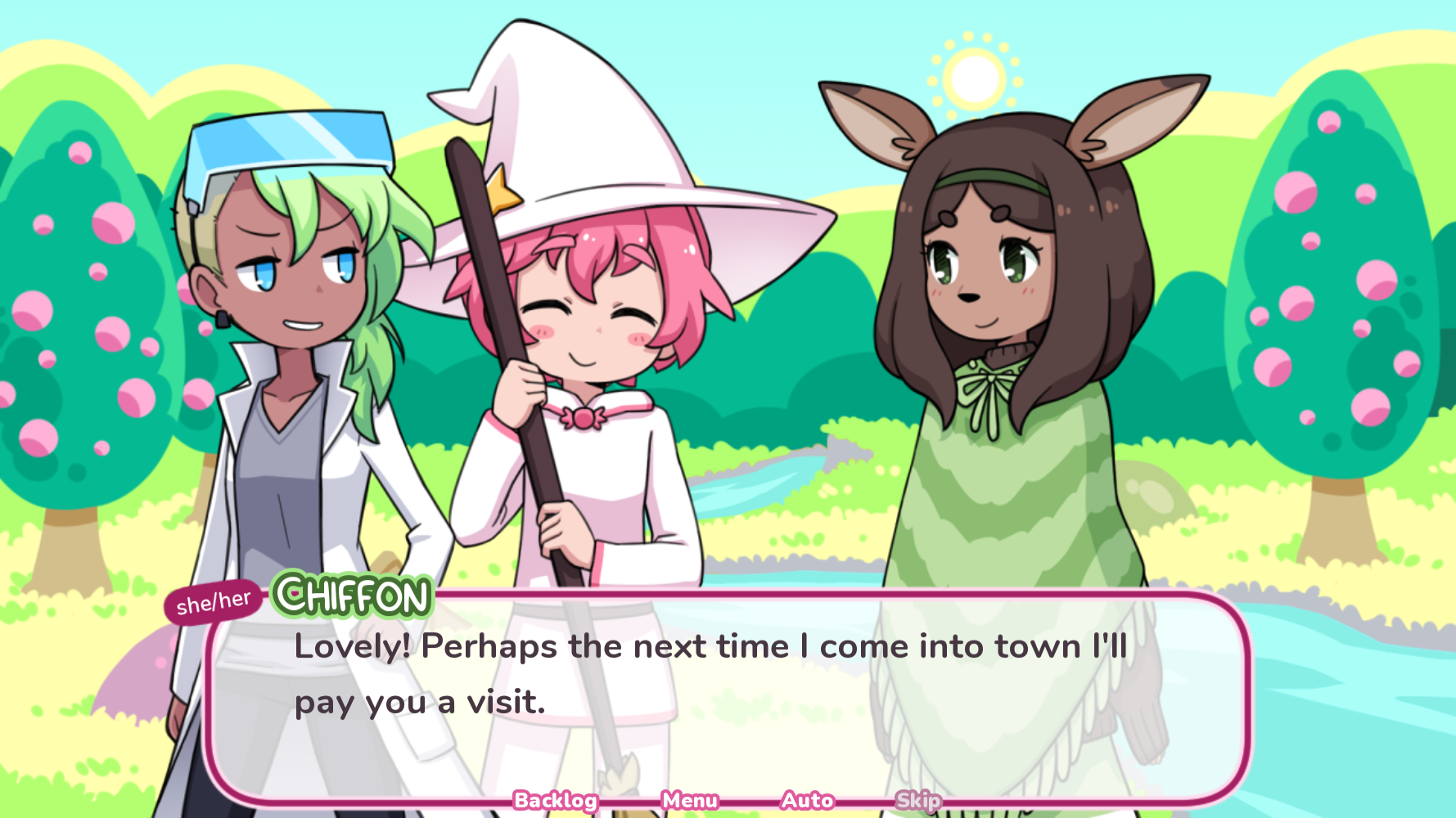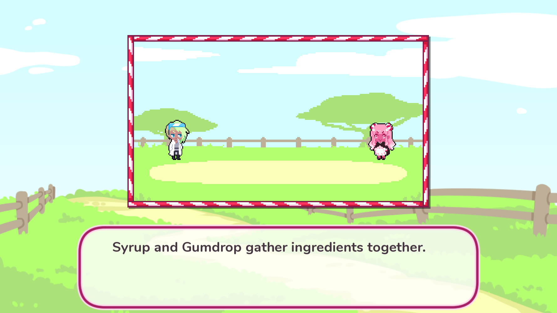 in syrup 2, you return as the titular syrup, a candy alchemist on a quest. she wants to improve her candy making after having made the ultimate sweet, so she's started adventuring to gather new, better ingredients. along the way, she's joined by her friends and rivals. there are many references to nami's other games and characters, as they're all in a connected universe from my understanding, but syrup 2 stands on its own. i especially loved seeing periwinkle - i remember i was really fond of starry flowers back in the day.